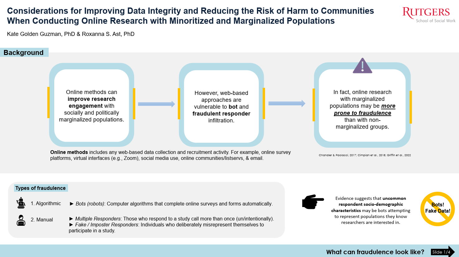 Golden Guzman, K. & Ast. R. A (2025). Centering community and mediating online survey threats: Case studies from social work research. Social Work Research. https://doi.org/10.1093/swr/svaf011
